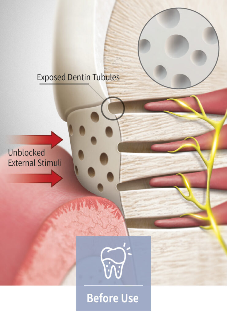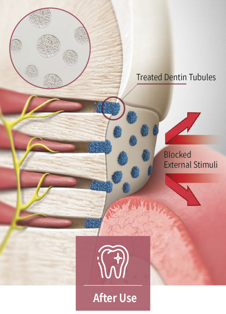 Vussen S blocks the the exposed dentin tubules by filling the fine gaps in damaged teeth.
